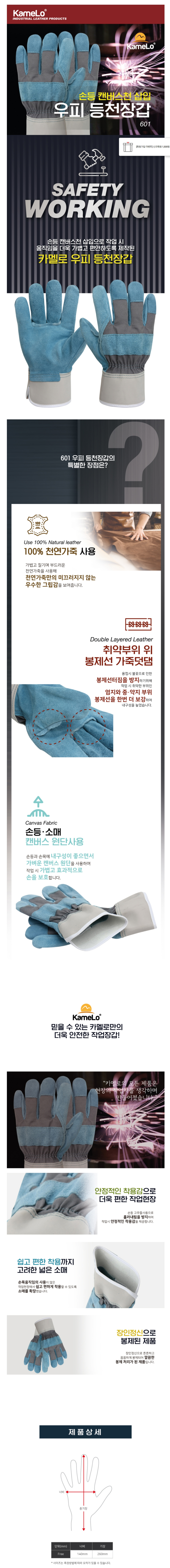 손등 캔버스천 삽입으로 작업 시 움직임이 더욱 가볍고 편안하도록 제작된 우피 등천장갑입니다.
