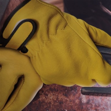 손바닥 가죽 덧댐으로 더욱 튼튼하고 안전한 산양피 용접장갑입니다.